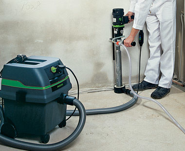 - Wet drilling in reinforced concrete, natural stone and asphalt, especially for narrow, difficult accessible places, e.g. in pits